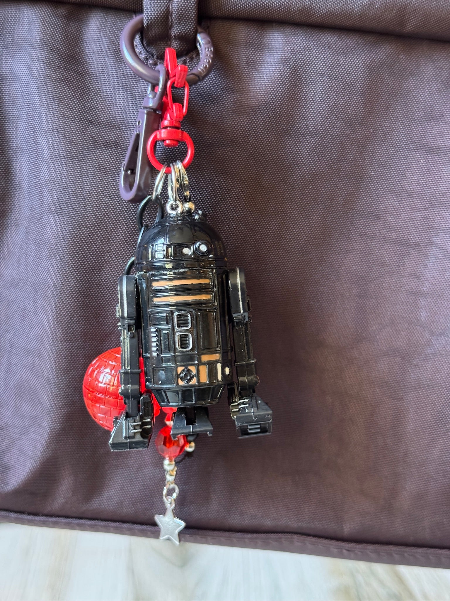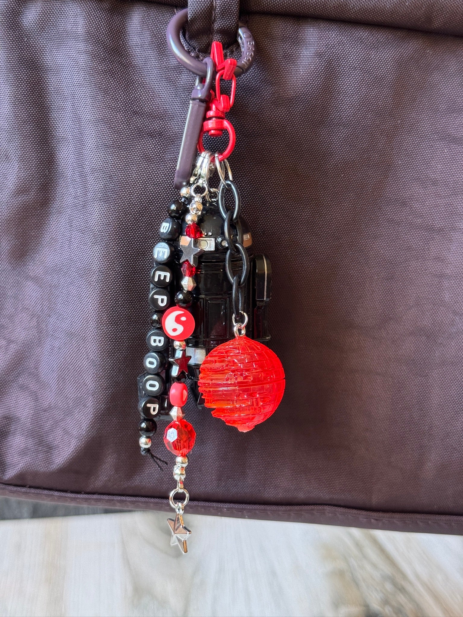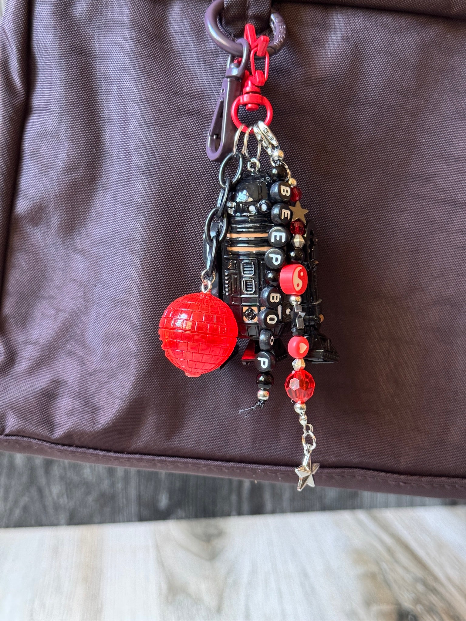Let this guy "Beep Boop" his way into your heart. Made with a R2-Q5 toy, complete with red Death Star accessory from the original packaging.